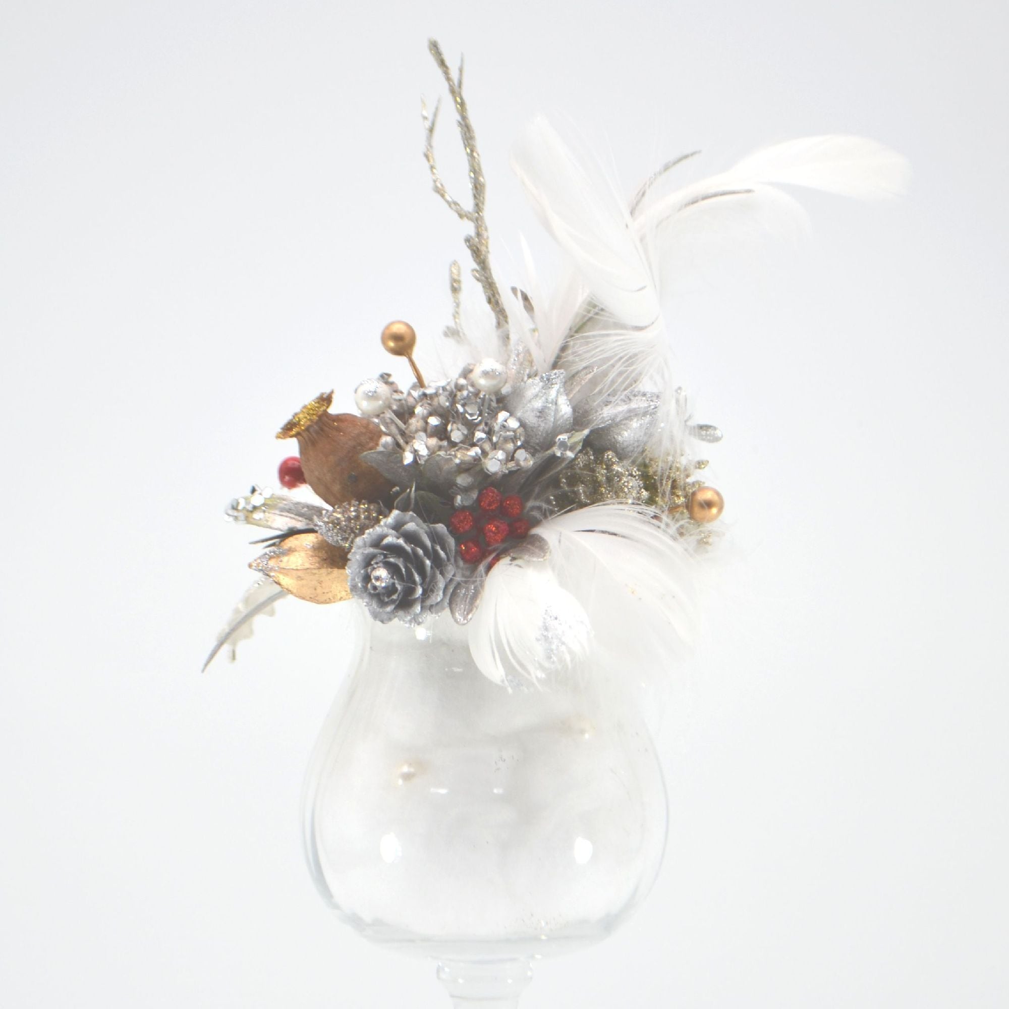 #アーティフィシャルフラワー #ホワイトオーナメント #シルバーオーナメント #ワイングラス #アレンジメント #インテリア雑貨 #一点物 #贈り物 #特別なシーン #オリジナル商品販売 #クリスマス飾り