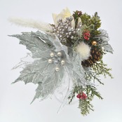 ライトグリーン&シルバーポインセチア・キャンドルスタンド・アレンジは、爽やかでありながら華やかなデザインが特徴のアレンジメントです。ライトグリーンのポインセチアの花とシルバーオーナメントが美しく調和し、お部屋に特別なクリスマスの雰囲気を演出!!