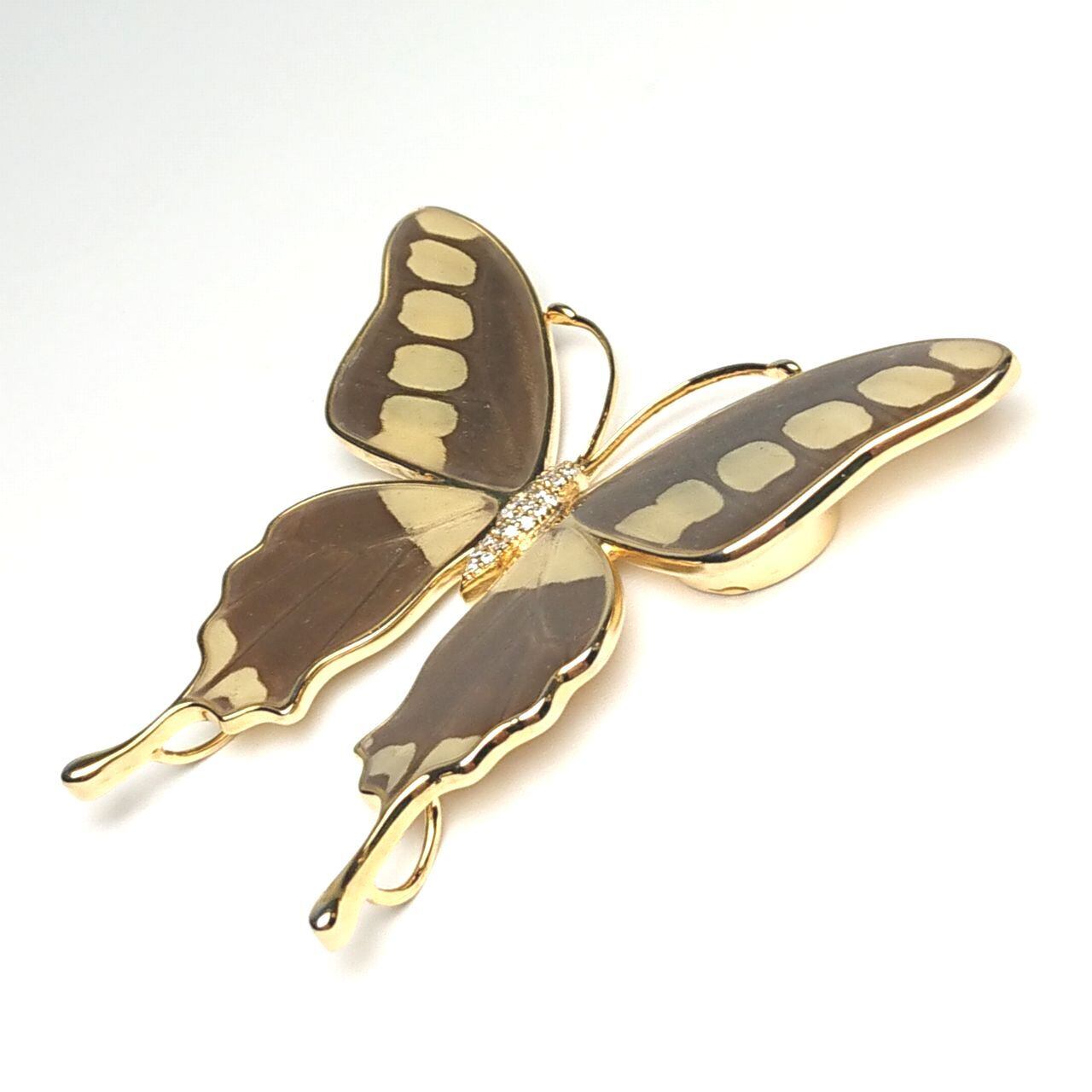 [ABR038A] リアル・バタフライ マグネット式ブローチ (ブラウン/クリーム:ゴールド)