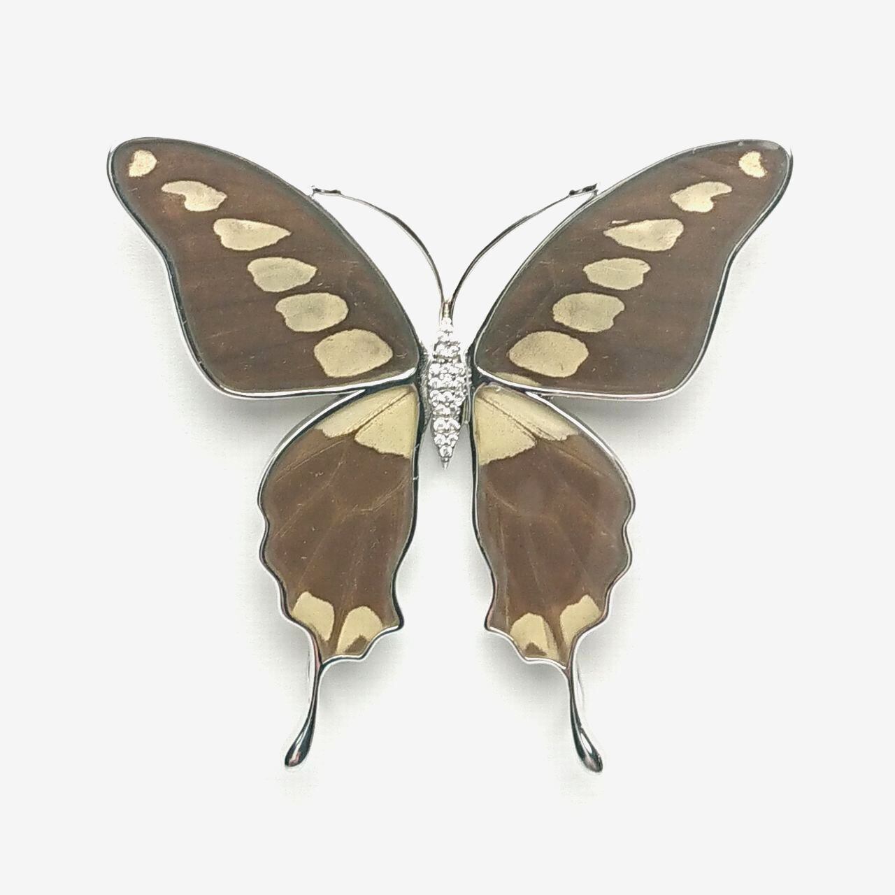 [ABR038B] リアル・バタフライ マグネット式ブローチ (ブラウン/クリーム:シルバー