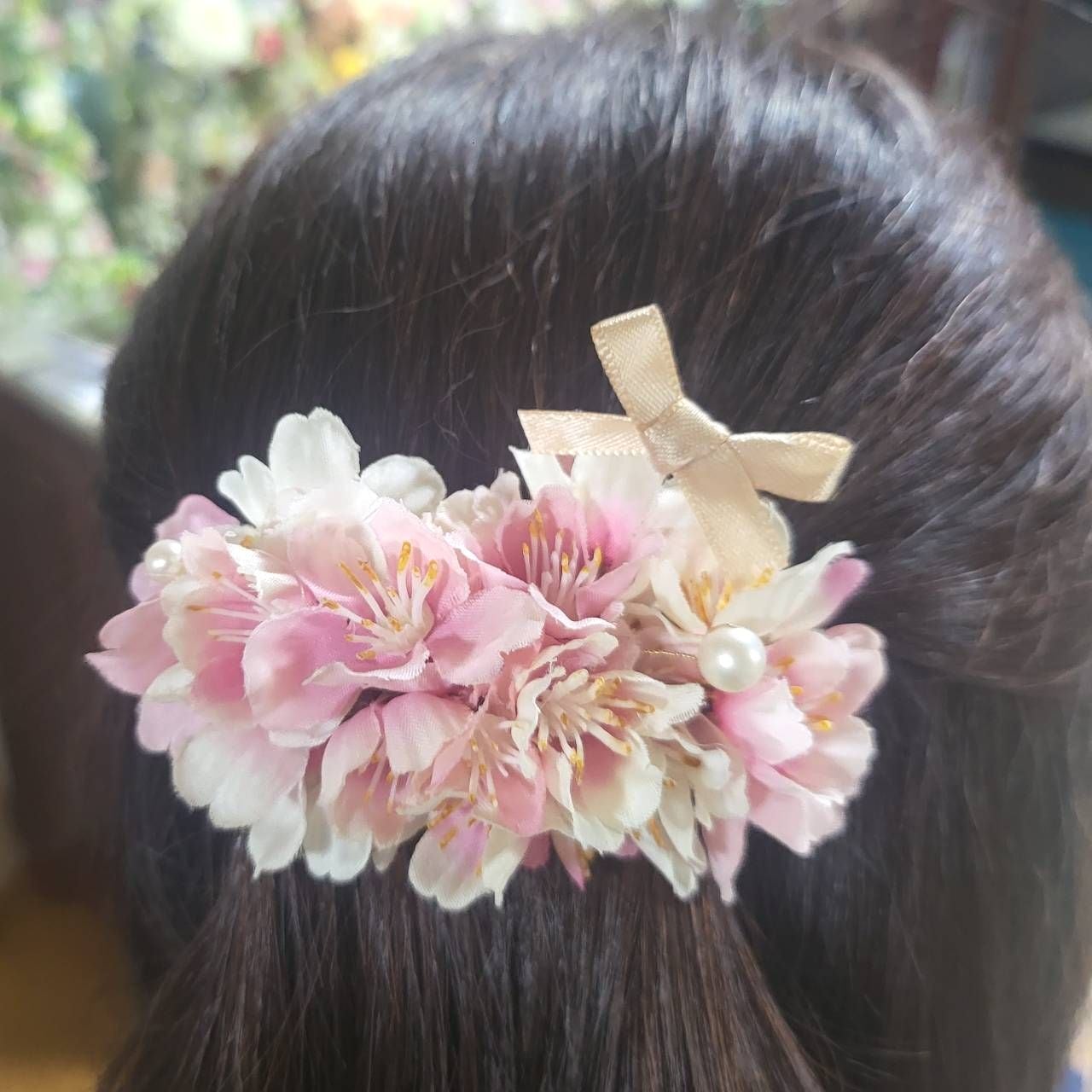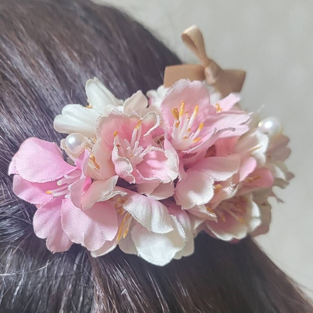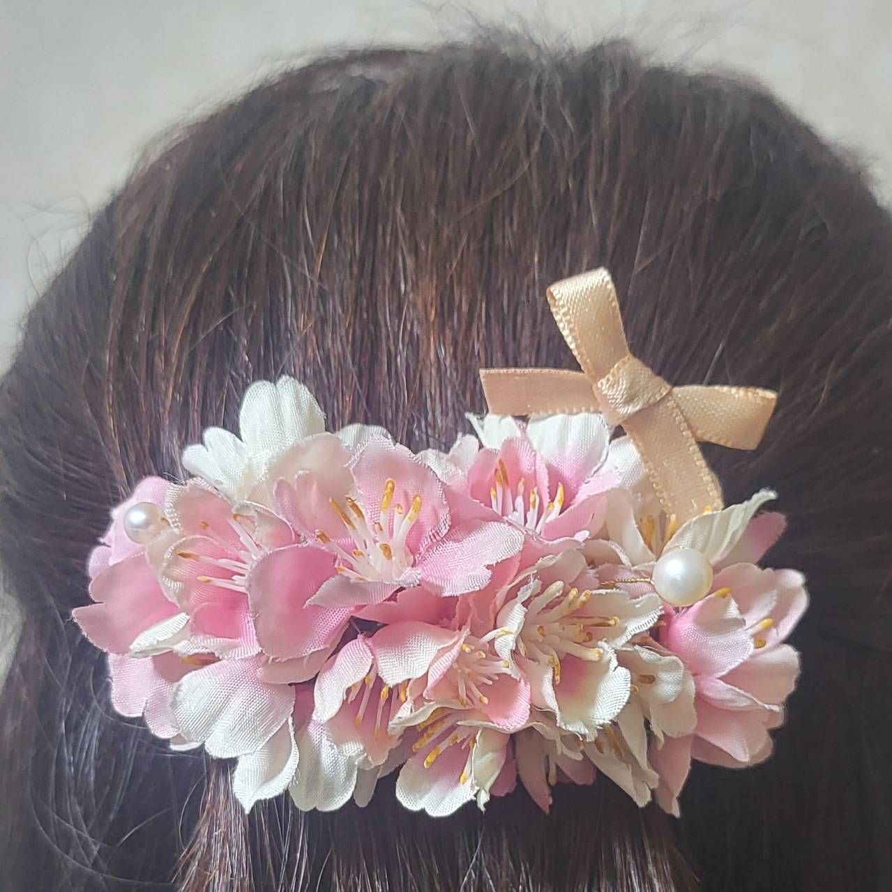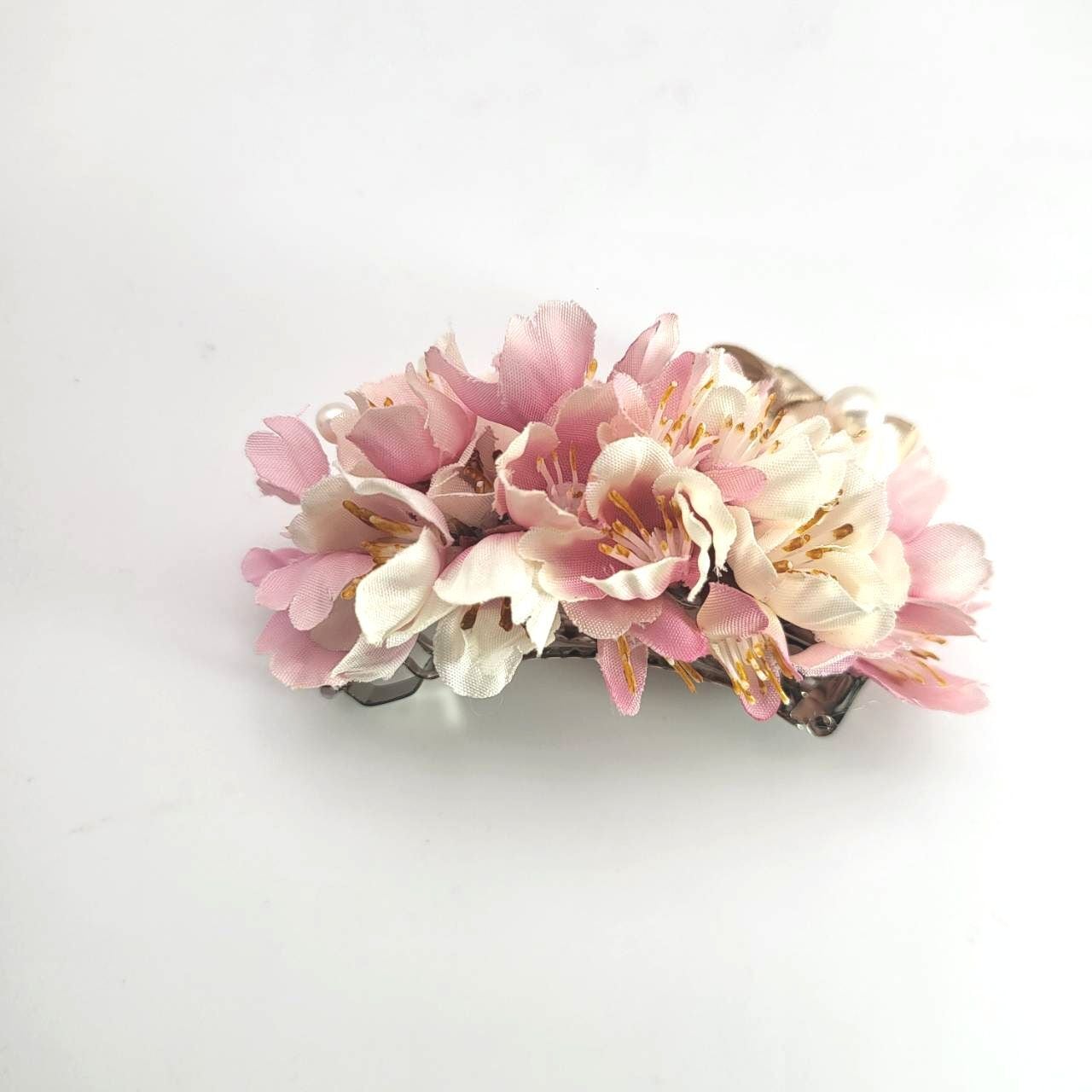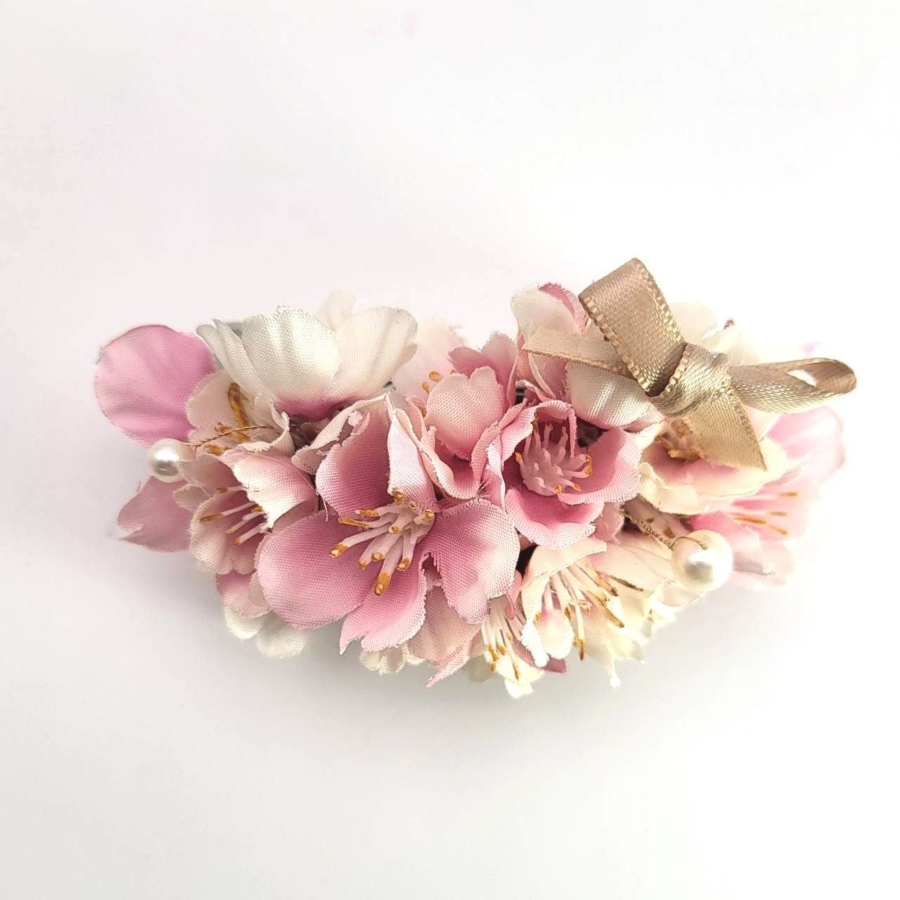 #リボンフラワー #ヘアアクセサリー #おしゃれアイテム #バレッタ #ギフトにおすすめ #オリジナル商品販売 #BASE #桜 #髪飾り