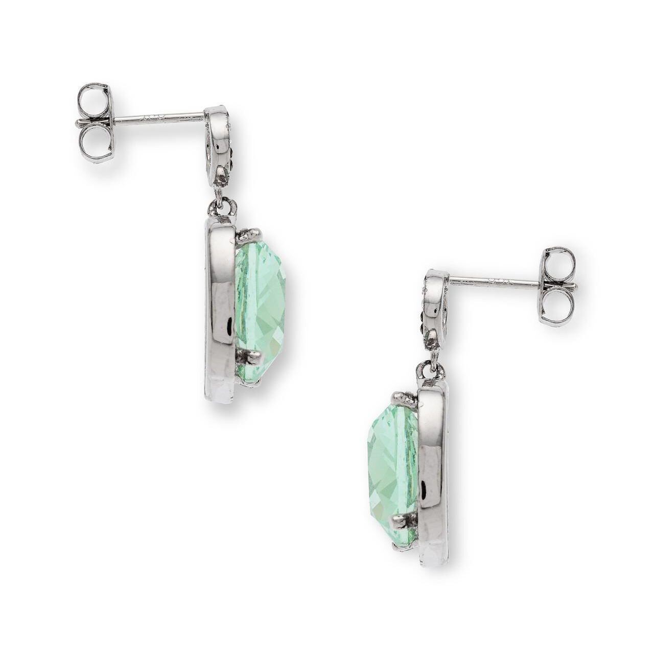 透明感のある淡いグリーンのキュービックジルコニアのカッテイングの美しいフォルムが魅力。ボリュームがある大振りなキュービックジルコニアも淡い色合いとエレガントなデザインで華やかになり過ぎない清潔感のあり仕上がりに!