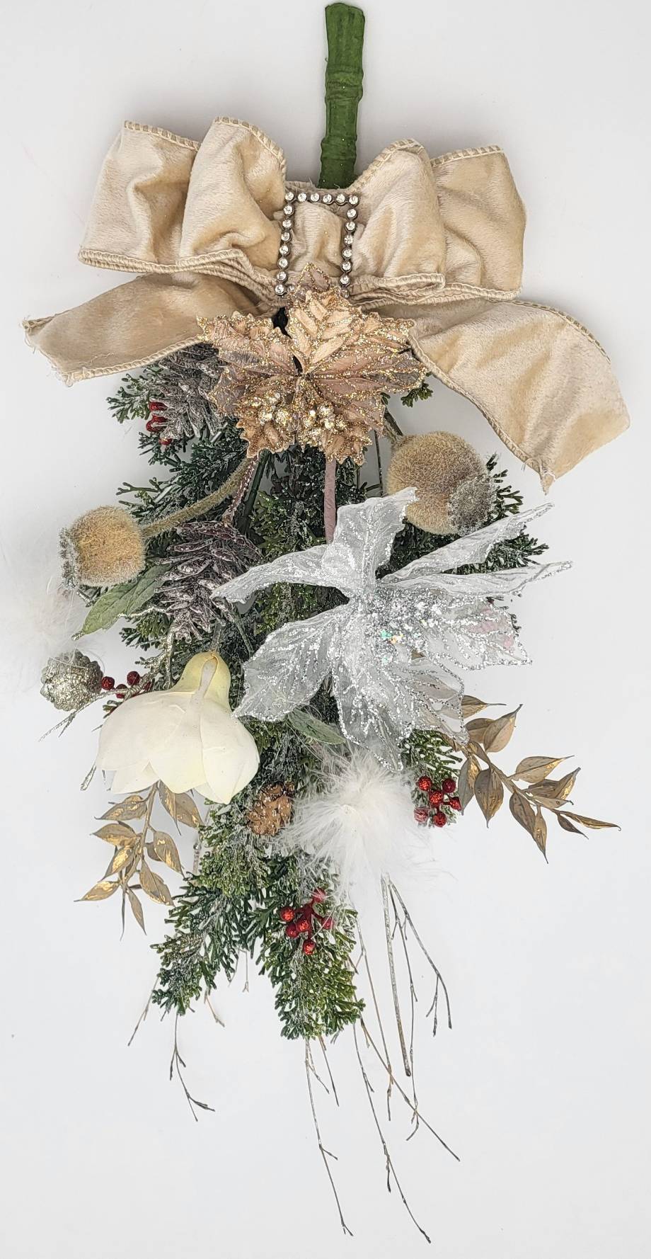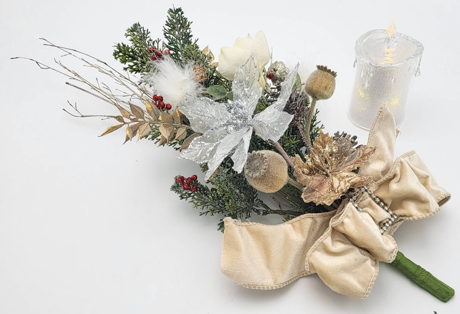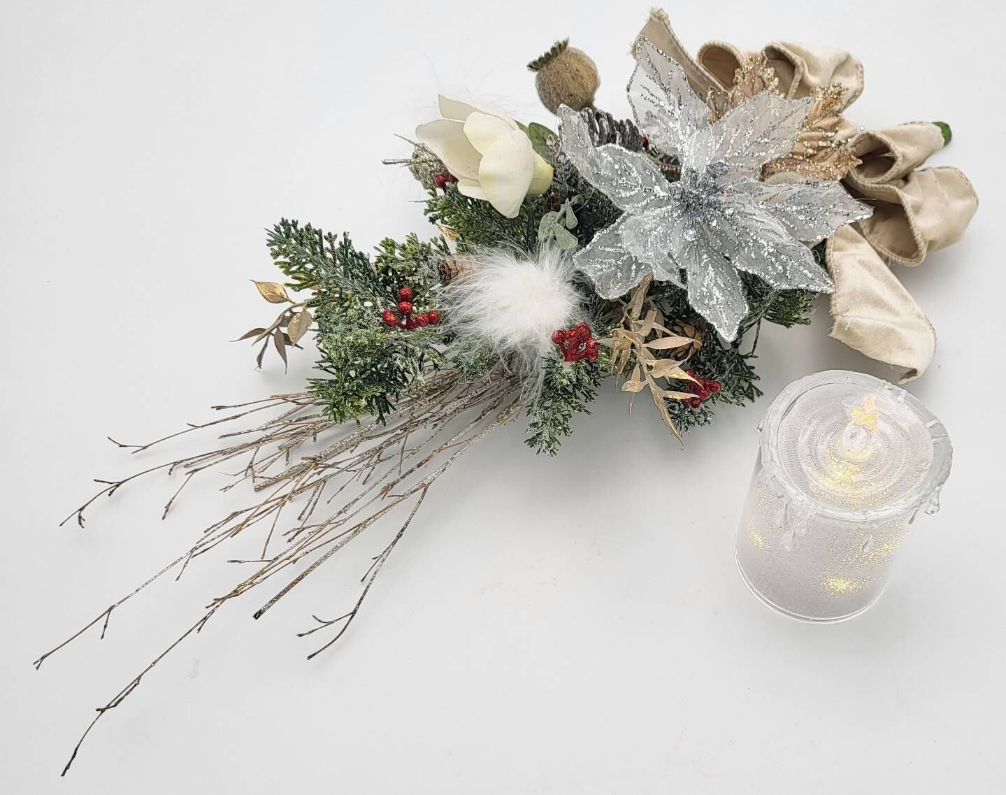 #クリスマスアレンジ #アートフラワー #シルバーポインセチア #一点物スワッグ #おしゃれディスプレイ #インテリア雑貨 #プレゼント #華やかなインテリア #ホームデコ #クリスマスギフト